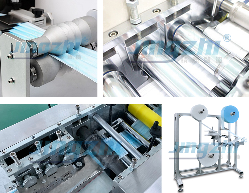 1.人工將兩層無紡布跟一層熔噴布裝入上料架 2.順著滾軸跟壓板穿入三層布 3.按下啟動(dòng)按鈕 4.在滾軸的帶動(dòng)下打片機(jī)自動(dòng)出片 |